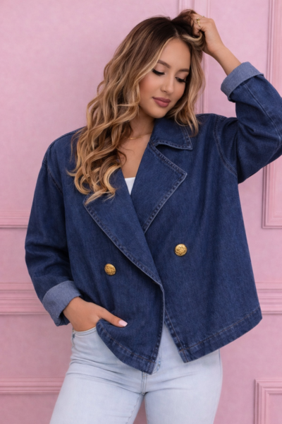 Елегантен модел с яка и копчета, комбиниран с ефектни детайли в предната част. Декоративните елементи придават характер и подчертават талията за по-женствен силует.